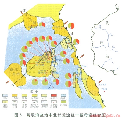 圖l顯示鶯歌海盆地圍區(qū)發(fā)育多條河流,西北部的紅河,總流域面積達(dá)ll.9×104km2,年輸沙量為1300×104t[6];海南島西部為昌化江,總長度約為250km,河水含沙量為0.392kg/m3[7],小于黃河而大于長江;此外,海南島的西部尚有多條獨(dú)流入海的河流。越南東部也有馬江、藍(lán)江、宋河、賢良河等河流,性質(zhì)與海南島類似。