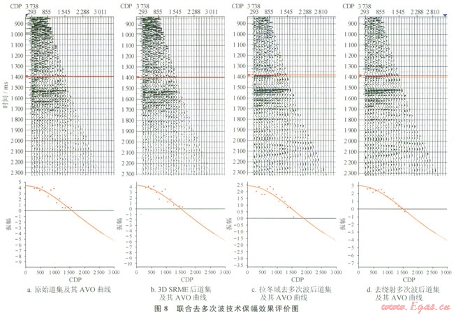 針對(duì)荔灣深水地區(qū)多次波發(fā)育特點(diǎn)開發(fā)的聯(lián)合去多次波技術(shù),將3D SRME技術(shù)、拉冬域去多次波技術(shù)和繞射多次波衰減技術(shù)組合到一起,多次波去除效果好,成果剖面保幅。該套技術(shù)應(yīng)用于荔灣深水地震資料處理,取得了較好的應(yīng)用效果,為荔灣深水氣田群的地震資料解釋、AV0分析和疊前反演提供了優(yōu)質(zhì)數(shù)據(jù)。