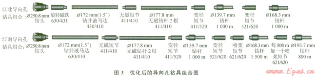 5)改進(jìn)技術(shù)細(xì)節(jié)。改進(jìn)控向線在鉆桿內(nèi)的固定方式,避免了在長(zhǎng)距離管道穿越過(guò)程中高速流動(dòng)的鉆井液對(duì)控向線長(zhǎng)時(shí)間沖刷而引發(fā)的短路現(xiàn)象。合理配置噴漿短節(jié)的數(shù)量以及水嘴孔徑,使得在保持充分潤(rùn)滑孔壁、減少摩擦阻力的同時(shí),保證了鉆井液馬達(dá)的工作效率,提高了鉆進(jìn)速度,縮短了導(dǎo)向孔的施工時(shí)間。