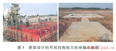 1)設(shè)計(jì)特殊地錨。通過(guò)計(jì)算回拖阻力,設(shè)計(jì)了專門針對(duì)大噸位回拖阻力的地錨(圖5),以抵抗大的回拖阻力。