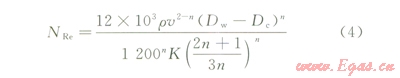 臨界雷諾數(shù)作為判別流體流動狀態(tài)的參數(shù)之一已得到業(yè)界的一定認可。目前,常規(guī)環(huán)空中流態(tài)判別標準采用NRc=3740-1370n。但石油行業(yè)實際應(yīng)用情況表明:常規(guī)計算中采用的紊流臨界流量比小間隙要偏低15%~20%。因此,將常規(guī)環(huán)空流態(tài)判別標準提高l7.5%,作為小間隙環(huán)空流態(tài)判別標準: