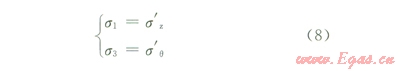當(dāng)垂向力為最大主應(yīng)力、周向應(yīng)力為最小主應(yīng)力時(shí),井壁上的應(yīng)力狀態(tài)滿足: