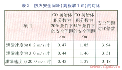 鎮(zhèn)燃氣設(shè)計規(guī)范》對CO體積分數(shù)的規(guī)定。采用FLUENT軟件模擬,以GB50028-2006規(guī)定的安全間距(即原安全間距)為參照,采取安全間距倍數(shù)修正的方法實現(xiàn)原安全間距的適用延續(xù)性。將原安全間距分別提高到2倍和4倍能滿足GB50028-2006對中毒和防火危害的防范。