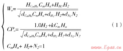 式中:CP0、W0——目標氣的華白數(shù)(MJ/m3)和燃燒勢;CmHn、H2、N2——碳氫化合物、氫氣、氮氣體積分數(shù);HCmHn、HH2——碳氫化合物、氫氣的高熱值(MJ/m3);dCmHn、dH2、dN2——碳氫化合物、氫氣、氮氣的相對密度;當CmHn為甲烷時,k=0.3;當CmHn為丙烷時,k=0.6;