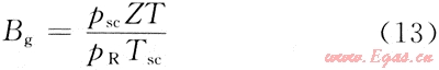 將psc=0.101MPa,Tsc=293K和式(13)代入式(12),并改為以SI制礦場實(shí)用單位表示時(shí)式(12)為: