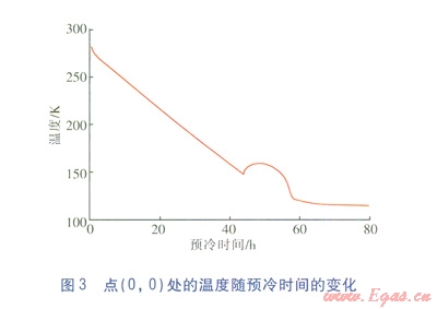 ②針對LNG儲罐噴淋預(yù)冷過程,儲罐底部中心的溫度并不是隨著預(yù)冷過程的進行而一直降低的,當(dāng)儲罐底部溫度降低到一定程度后,底部中心出現(xiàn)了溫度不降反升的現(xiàn)象。這是二次回流和底部混凝土向罐內(nèi)導(dǎo)熱共同作用的結(jié)果。