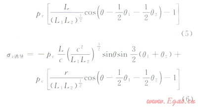 則在水平面上人工裂縫所引起的不同位置的誘導應力為: