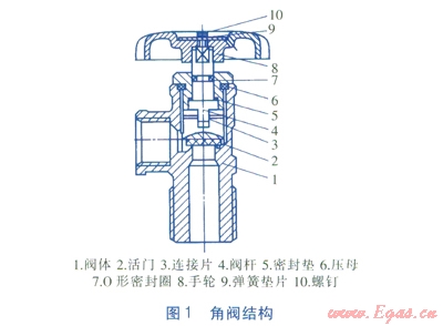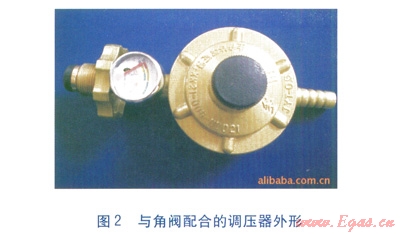 角閥帶有手輪,順時針轉(zhuǎn)動可關(guān)閉角閥,角閥結(jié)構(gòu)見圖1,與角閥配合的調(diào)壓器外形見圖2。