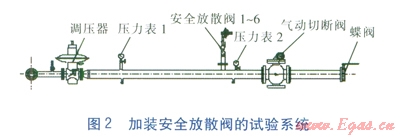 在調(diào)壓器和氣動切斷閥之間安裝6個(gè)安全放散并,測壓點(diǎn)選在安全放散閥下游的壓力表2處,用戶用氣設(shè)備切斷閥采用氣動切斷閥進(jìn)行模擬。