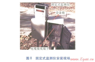 固定式監(jiān)測(cè)儀由220V電源供電,最大監(jiān)測(cè)管段長(zhǎng)度為5km,對(duì)于長(zhǎng)距離熱網(wǎng),應(yīng)根據(jù)監(jiān)測(cè)儀的最大監(jiān)測(cè)管段長(zhǎng)度,將熱網(wǎng)分為若干獨(dú)立的監(jiān)測(cè)回路。固定式監(jiān)測(cè)儀置于專門設(shè)備箱內(nèi),故障信號(hào)可上傳至監(jiān)測(cè)中心,實(shí)施遠(yuǎn)距離監(jiān)測(cè)系統(tǒng)集中管理。移動(dòng)式監(jiān)測(cè)儀能夠?qū)?span lang="EN-US">2~5km長(zhǎng)度范圍內(nèi)的管段進(jìn)行監(jiān)測(cè),可實(shí)現(xiàn)對(duì)附近沒有電源無(wú)法設(shè)置固定式監(jiān)測(cè)儀及某些分支管段的監(jiān)測(cè)。固定式監(jiān)測(cè)儀安裝現(xiàn)場(chǎng)、移動(dòng)式監(jiān)測(cè)儀操作現(xiàn)場(chǎng)分別見圖8、9。