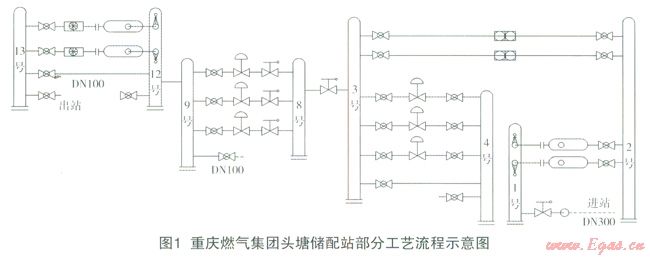 利用前面介紹的方法,對重慶燃氣集團股份有限公司某儲配站進行計算,該儲配站部分工藝流程示意圖見圖1。