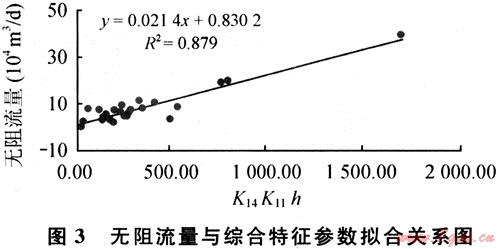 根據(jù)產(chǎn)能與特征參數(shù)的關(guān)系,擬合的產(chǎn)能預(yù)測公式具有計(jì)算簡捷和較準(zhǔn)確的特點(diǎn)。