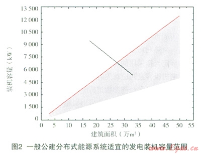 在實際項目實施中,如果沒有足夠資料對供能對象做詳細(xì)的負(fù)荷分析,可結(jié)合相關(guān)技術(shù)規(guī)定及已有項目運(yùn)行經(jīng)驗簡單確定發(fā)電機(jī)組的容量。對于一般公共建筑,可根據(jù)其功能特點(diǎn),按照設(shè)計電負(fù)荷的20%~50%選擇發(fā)電機(jī)組容量,全年負(fù)荷較為穩(wěn)定的建筑取上限,負(fù)荷波動較大的建筑取下限,如圖l所示。