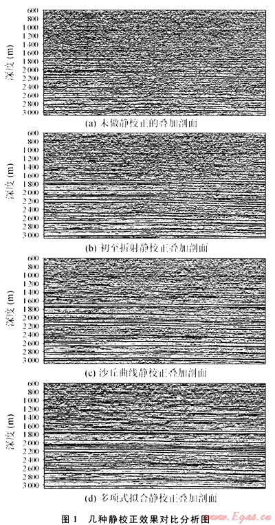 多項式擬合靜校正技術(shù)充分利用了表層調(diào)查數(shù)據(jù),因而靜校正結(jié)果與實際地表條件接近,應(yīng)用起來比較方便。針對沙漠地區(qū)的靜校正,無論是沙丘曲線法還是多項式擬合法,都是建立在表層調(diào)查數(shù)據(jù)基礎(chǔ)上進行的,實際上它們具有統(tǒng)計意義,因而必須有充分的沙丘調(diào)查基礎(chǔ)數(shù)據(jù)(沙丘數(shù)據(jù)觀測點的密度和分布是否合理,是否有代表性),才能保證統(tǒng)計結(jié)果的正確性。正是由于具有統(tǒng)計特點,某種意義上避免了一些微測井和小折射資料的解釋誤差,同時也具有統(tǒng)計意義上的一些缺陷。無論何種靜校正方法都有它的特點、適用的地表條件及所能解決的問題,沒有一種“放之四海而皆準”的方法,計算靜校正時,前面要考慮野外采集的基礎(chǔ)信息,后面要考慮構(gòu)造的分布和埋深。欲解決復(fù)雜探區(qū)的靜校正,要做的工作還