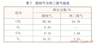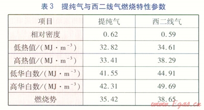 提純氣與西二線氣組成見表2,提純氣與西二線氣燃燒特性參數(shù)見表3。