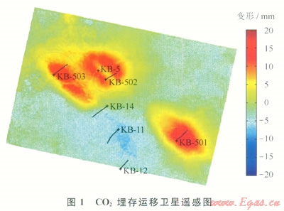 CO2捕集與埋存技術(shù)(Carbon Dioxide Capture and Storage,簡(jiǎn)稱CCS)是實(shí)現(xiàn)CO2減排的首選技術(shù)之一[1],但成本高昂[1-2]。真正意義上獲得全球公認(rèn)的3例大型的工業(yè)CCS項(xiàng)目是:①將CO2埋存在油氣層下部鹽水層的Sleipner-Snjhvit項(xiàng)目;②與CO2-EOR相結(jié)合的Weybrn項(xiàng)目;③在含CO2的低豐度天然氣層中埋存CO2的In Salah項(xiàng)目[2-3]。它們均屬于CO2地質(zhì)埋存同時(shí)結(jié)合石油天然氣開(kāi)發(fā)的項(xiàng)目,其目的是通過(guò)規(guī)?;C合利用來(lái)降低CO2地質(zhì)埋存的成本。其中In Salah項(xiàng)目在2009年成為CSLF(碳收集領(lǐng)導(dǎo)入論壇)贊助的全球30個(gè)CCS項(xiàng)目之一,是CSLF認(rèn)證的全球3個(gè)CO2埋存檢測(cè)示范點(diǎn)之一。In Salah氣田儲(chǔ)量2149×108m3,產(chǎn)干氣和少量輕質(zhì)油,部分氣藏產(chǎn)CO2,CO2含量5%~l0%。CO2埋存層位是Krechba氣層,為石炭系低滲透砂巖邊水、干氣藏,且富含CO2。氣層厚度20m,孔隙度10%~18%,平均滲透率10mD,CO2埋藏深度為地下1850~1950m。為了在采氣的同時(shí)實(shí)施CO2埋存,項(xiàng)目總投資27億美元。2004年—2011年,氣田進(jìn)行了大規(guī)模天然氣開(kāi)采和CO2地質(zhì)埋存,回注CO2速度約100×104t/a。圖1給出2009年In Salah氣田Krechba氣層CO2埋存的運(yùn)移衛(wèi)星遙感圖顯示,經(jīng)過(guò)5年大劑量的CO2注入后,Krechba氣層的CO2擴(kuò)散仍比較均勻,在生產(chǎn)井未見(jiàn)CO2突破。結(jié)合已經(jīng)公開(kāi)的成果可知,該項(xiàng)目到目前埋存是成功的[2-7]。