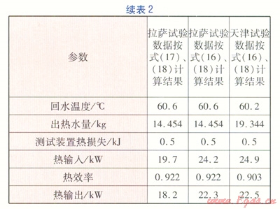 某品牌燃?xì)獠膳療崴疇t,型號(hào)為L1PB24,平原地區(qū)設(shè)計(jì)采暖額定熱輸入24kW、采暖額定熱輸出22kW。拉薩地區(qū)設(shè)計(jì)采暖額定熱輸入19.5kW、采暖額定熱輸出18kW。分別按式(16)及式(17)計(jì)算熱流量(熱輸入),按式(18)計(jì)算熱效率,熱輸出為熱效率乘以熱輸入。具體計(jì)算數(shù)據(jù)見(jiàn)表2。