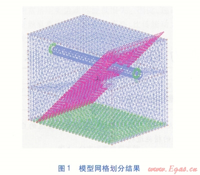 設(shè)定單元類(lèi)型:定義管道為殼單元:shell element,巖土定義為三維實(shí)體單元:3D solid element,斷層處不設(shè)單元。設(shè)定材料屬性:a.鋼材彈性模量為2.07×105MPa,泊松比為0.29,密度為7800kg/m3。b.巖土分層情況為:上層為砂黏土,下層為石灰?guī)r,將巖土的特性參數(shù)輸入ADINA,管道位于砂黏土層。單元類(lèi)型、材料屬性完成設(shè)定后,采用ADINA-M選單下的Parasolid建立幾何模型,用切片Sheet和體修改器Body Modifier對(duì)幾何體進(jìn)行修飾。切片Sheet用于切出斷層,體修改器Body Moditier用于將斷層與巖土分開(kāi)。最后通過(guò)ADINA中的布爾操作(Boolean Operator)實(shí)現(xiàn)管道與巖土、斷層之間的融合。