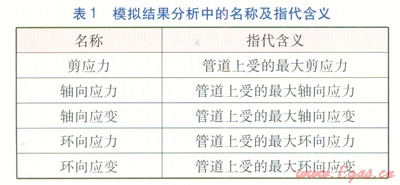 模擬結(jié)果分析中的名稱及指代含義見(jiàn)表1。埋地管道內(nèi)水流速為10m/min。