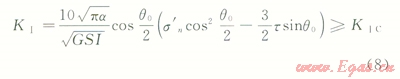 將式(7)確定的開裂角(q0)代入式(6),求出拉剪作用下的裂紋起裂應(yīng)力強(qiáng)度因子為: