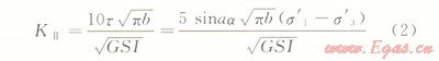 式中KⅡ為剪性裂縫強(qiáng)度因子;s¢1、s¢3為最大和最小有效應(yīng)力;a為裂縫與主應(yīng)力s¢3的夾角;b為微裂長(zhǎng)度;t為裂縫面上切應(yīng)力。