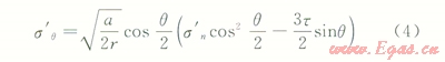 當(dāng)s¢n<0時(shí),裂縫面法向應(yīng)力為拉應(yīng)力狀態(tài),產(chǎn)生法向位移、裂開,滑動(dòng)抗剪摩擦力忽略不計(jì),裂縫端部擴(kuò)展裂紋(r,q)處的s¢q可表示為: