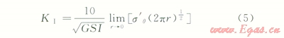 由式(4)、(5)可得出擴(kuò)展裂縫(r,q)處的應(yīng)力強(qiáng)度因子為: