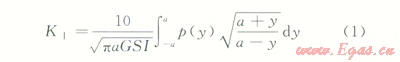 式中KI為煤巖體張性裂縫強(qiáng)度因子;p(y)為作用于裂縫面上的凈壓力;a為裂縫的半長(zhǎng);y為裂縫上任一點(diǎn)到井筒中心的距離;GSI為煤巖體地質(zhì)強(qiáng)度指標(biāo),反映非完整煤巖體結(jié)構(gòu)與力學(xué)特性的一個(gè)定量指標(biāo)[17-18],不同GSl值的煤巖體應(yīng)該具有不同的應(yīng)力強(qiáng)度因子。