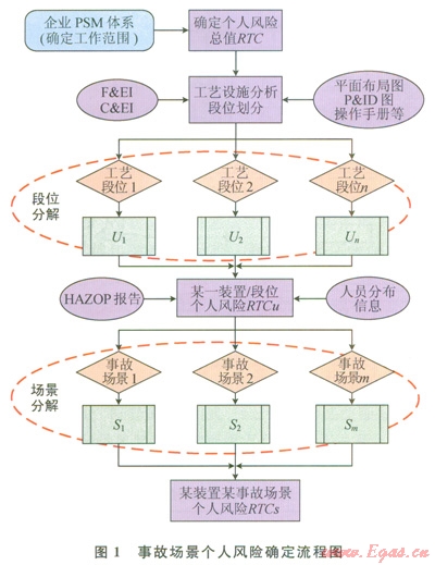 在獲得各工藝段位的個人風險準則RTCU之后,進入圖1所示的第2階段的場景分解:根據(jù)HAZOP報告(或其他的工藝災害分析PHA結果),以及設施的人員分布信息,由下式計算各事故單元的個人風險準則RTCS。即