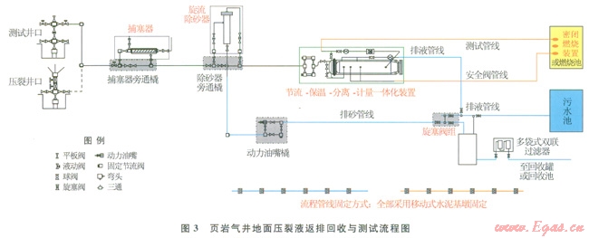 摘 要:試油測試作業(yè)是油氣田開發(fā)中不可缺少的環(huán)節(jié),環(huán)保試油是一種全新的發(fā)展理念,為此,結(jié)合川渝地區(qū)油氣田的實際情況,針對性地提出了4種試油安全環(huán)保處理的技術(shù)方案:①采用移動式固定基墩替代傳統(tǒng)的打水泥基墩坑來固定放噴測試管線,清潔環(huán)保,作業(yè)效率高;②使用密閉燃燒裝置在井場內(nèi)燃燒放噴天然氣體,可大大減少征地修建燃燒池的費用以及對耕地的破壞;③優(yōu)化非常規(guī)氣井放噴排液回收流程,對返排液進行精細化過濾回收處理,處理后的液體可直接作為下層或下一口井的壓裂基液,解決了廢液排放帶來的環(huán)境污染和水資源浪費等問題;④運用井筒排出液自動實時除硫技術(shù),在全密閉環(huán)境下實時除硫、消泡與中和殘酸,實現(xiàn)含硫井排出液在污水池內(nèi)的安全排放,保護了環(huán)境。上述系列技術(shù)已經(jīng)在四川盆地高含硫氣井和頁巖氣等非常規(guī)氣井中開展了廣泛的應(yīng)用,效果較佳,為常規(guī)的試油測試工藝注入了新鮮的“血液”。