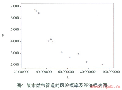 通過上述步驟可得知,燃?xì)夤艿涝诿恳灰?guī)定時(shí)間段內(nèi)(如1年)發(fā)生事故的概率以及事故發(fā)生后所造成的經(jīng)濟(jì)損失,使用回歸分析法對(duì)數(shù)據(jù)進(jìn)行擬合。