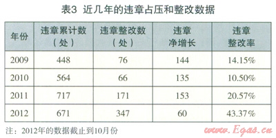 6家公司根據(jù)以上整理的各種措施和手段積極的推進(jìn)了違章壓占的整改和預(yù)防工作,做到了一案一卷,取得了初步的成效。見表3。