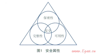 信息的安全風(fēng)險(xiǎn)主要來自于信息的保密性、完整性和可用性。在企業(yè)中,信息可能會通過口頭、網(wǎng)絡(luò)、打印機(jī)、復(fù)印機(jī)、存儲設(shè)備等途徑不經(jīng)意地泄露。要避免重要信息的泄露,在信息的傳遞和保管過程中要把好關(guān);然后,還要防止信息被誤變更或被惡意變更,做到保護(hù)信息的完整性;最后,要做好信息源頭的安全保障,即要保障信息處理設(shè)備和信息傳遞渠道的高可用性。制定清晰的信息處理流程,建立滿足服務(wù)的完善運(yùn)維保障,以及設(shè)法保持業(yè)務(wù)連續(xù)性管理都是保證信息高可用的重要措施。正是信息的這3個(gè)屬性結(jié)合才形成了信息的安全性,如圖1所示: