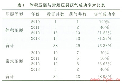4.2 體積壓裂與常規(guī)壓裂獲氣成功率評價(jià)