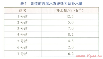 以青島市敦化路區(qū)域供熱蒸汽改高溫水工程為例,本區(qū)域內(nèi)原有的13座用戶熱力站以華電發(fā)電廠的蒸汽為熱源,改造后新建l座高溫水首站,13座用戶熱力站以首站高溫水為熱源,其中7座用戶熱力站采用混水系統(tǒng)供熱(如圖1所示),6座用戶熱力站采用間接換熱系統(tǒng)供熱。該工程改造完成后,供暖面積將達(dá)到192.6×104m2。在供熱規(guī)模不變的情況下,與原供熱方式相比,一級熱力管網(wǎng)(高溫水管網(wǎng)比蒸汽管網(wǎng)熱損失率大幅度降低)改造后節(jié)約標(biāo)準(zhǔn)煤量為2125.9t/a,凝結(jié)水回收節(jié)約標(biāo)準(zhǔn)煤量為1497.4t/a,新建高溫水首站增加電力能耗量折合節(jié)約標(biāo)準(zhǔn)煤量為-44.7t/a,綜合計(jì)算這3項(xiàng)得出每年降低煤耗折合標(biāo)準(zhǔn)煤量為3578.6t/a,可減少二氧化硫排放量為74t/a,減少煙塵排放量為18t/a,減少氮氧化物排放量為37t/a,減少二氧化碳排放量為9198t/a。該項(xiàng)目的實(shí)施具有良好的節(jié)能效益和環(huán)境效益,符合國家環(huán)保政策,通過該項(xiàng)目的實(shí)施可全面提升企業(yè)的能源綜合利用率,實(shí)現(xiàn)環(huán)境效益、社會效益和企業(yè)經(jīng)濟(jì)效益的協(xié)調(diào)統(tǒng)一。