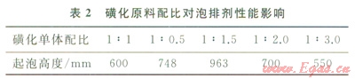 2.1.4磺化合成原料配比對起泡性能的影響