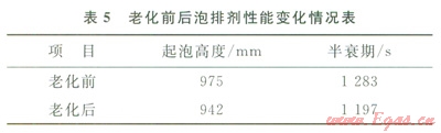將10g泡排劑放入反應釜中老化24h,用蒸餾水配制體積分數(shù)為0.3%的液體,測量起泡高度和半衰期,老化前后泡排劑性能變化情況如表5所示。