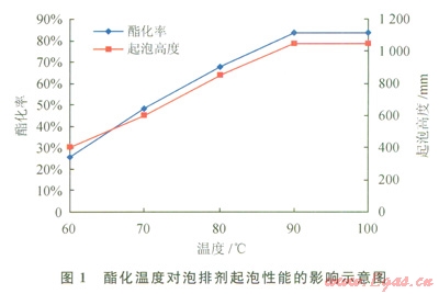 2.1.2酯化溫度對泡排劑起泡性能的影響