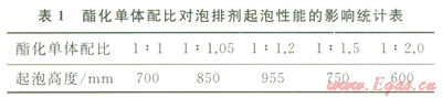 2.1.1酯化原料配比對泡排劑起泡性能的影響