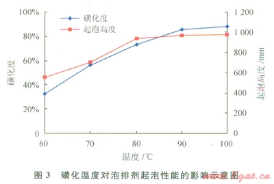 2.1.5磺化反應溫度對起泡性能的影響