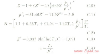天然氣的平均對比壓力(p¢r)、平均對比溫度(T¢r)可由以下公式計算。