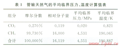 式中p¢c為天然氣的平均臨界壓力,Pa;pci為天然氣中組分i的臨界壓力,Pa;T¢c為天然氣的平均臨界溫度,K;Tci為天然氣中組分i的臨界溫度,K;yi為天然氣中組分i的摩爾分數(shù)。