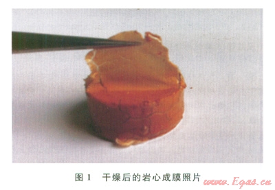 實(shí)驗(yàn)表明:當(dāng)成膜液濃度達(dá)200kg/m3后,巖心在成膜液中浸泡10s就能在表面形成防滲膜(圖1)。因此,從成膜效果和成本考慮,成膜液濃度300~400kg/m3為最優(yōu)加量。