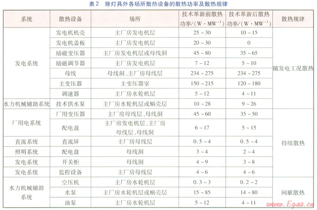20世紀(jì)90年代以來(lái),隨著設(shè)備制造工藝的提高,水電站大部分設(shè)備耗損降低,散熱量也隨之減少。主要體現(xiàn)在以下方面。