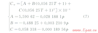 計算水泥漿等溫壓縮系數(shù)時,認為水泥漿中固相顆粒不可壓縮,而水相可以壓縮。首先根據(jù)BrillBeggs提出的經(jīng)典模型,計算高溫高壓下水的等溫壓縮系數(shù):