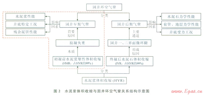 環(huán)空氣竄是幾乎所有天然氣井固井都存在的一個潛在問題,輕則導(dǎo)致井口環(huán)空帶壓,重則發(fā)生不可控井噴事故,嚴重影響油氣井的固井質(zhì)量和安全[1]。準(zhǔn)確預(yù)測水泥漿凝結(jié)過程中的氣竄潛在風(fēng)險是有效預(yù)防環(huán)空氣竄現(xiàn)象的關(guān)鍵技術(shù)?,F(xiàn)有水泥漿防氣竄能力評價預(yù)測方法主要考慮了水泥漿失水、膠凝過渡時間等性能[2-8],對井下地層、套管等相關(guān)特定工況影響氣竄的考慮較少,因此目前未能很好地解決環(huán)空氣竄問題。本文結(jié)合水泥漿塑性體積收縮是導(dǎo)致孔隙壓力下降的本質(zhì),分析了初凝前塑性態(tài)水泥漿體積收縮與孔隙壓力之間的量化關(guān)系,提出了固井早期氣竄問題的氣竄預(yù)測新方法。該方法較現(xiàn)有經(jīng)驗公式法而言,可更為