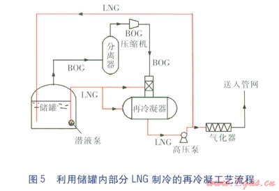 利用儲罐內(nèi)部分LNG制冷的再冷凝工藝流程見圖5。