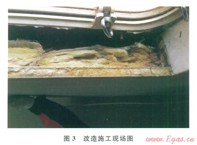 海上固定平臺長期受潮濕、日照、腐蝕等因素影響[13],使平臺生活樓房間墻壁原有隔聲效果降低。為更好的阻礙空氣噪聲及振動(dòng)噪聲的傳播,針對房間的墻壁提出改造處理。生活樓房間的吸隔聲內(nèi)墻壁如圖1所示,墻壁的隔聲效果不佳。對于該類房間的墻壁,選用符合中國船級社規(guī)定的吸隔聲材料,如圖2所示。對于噪聲超標(biāo)代表性房間進(jìn)行現(xiàn)場施工改造,改造現(xiàn)場圖如圖3所示。