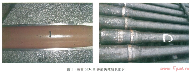 筆者從中國(guó)石油川慶鉆探工程公司(以下簡(jiǎn)稱川慶鉆探)的2013年度鉆具疲勞失效分析會(huì)議注意到:茍西003-H1井[1]一共發(fā)生14次在鉆桿過(guò)渡帶消失區(qū)的刺穿失效,其中9次為連續(xù)發(fā)生的,更換不同廠家鉆具無(wú)效。而鄰近2口井采用同廠家的鉆具則沒有發(fā)生任何失效,不同的是該井造斜點(diǎn)僅為300m,但井斜不大且發(fā)生失效段狗腿度也不大。這種明顯的周期性鉆具累積疲勞破壞近年時(shí)有發(fā)生,主要與井身軌跡復(fù)雜有關(guān)[2],應(yīng)重點(diǎn)考慮淺井段造斜作業(yè)的影響。以此作為一種失效類型進(jìn)行統(tǒng)計(jì),力求分析得出結(jié)論,既可以為施工作業(yè)進(jìn)一步預(yù)防和避免此類失效提供思路,也可以為設(shè)計(jì)部門借鑒。