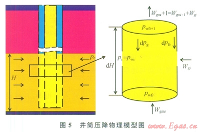 其步驟為:①將產(chǎn)層以上的井筒部分分成m等份,按照平均溫度平均壓縮因子井簡壓降模型[11]計(jì)算出產(chǎn)層頂部壓力(p0);②將整個(gè)產(chǎn)層等分成n份,產(chǎn)層頂部為第n個(gè)微元段,底部為第1個(gè)微元段;③利用式(8)計(jì)算第咒個(gè)微元段的底部壓力(pwfn),根據(jù)滲流模型(1)~(2)、耦合條件(9)~(11)計(jì)算從產(chǎn)層流入井筒的氣體質(zhì)量流量(Wgn),計(jì)算流入第n-1個(gè)微元段的氣體質(zhì)量流量,即Wgtn-1=Wgtn-Wgn;④重復(fù)第③步,直至算到產(chǎn)層底部。